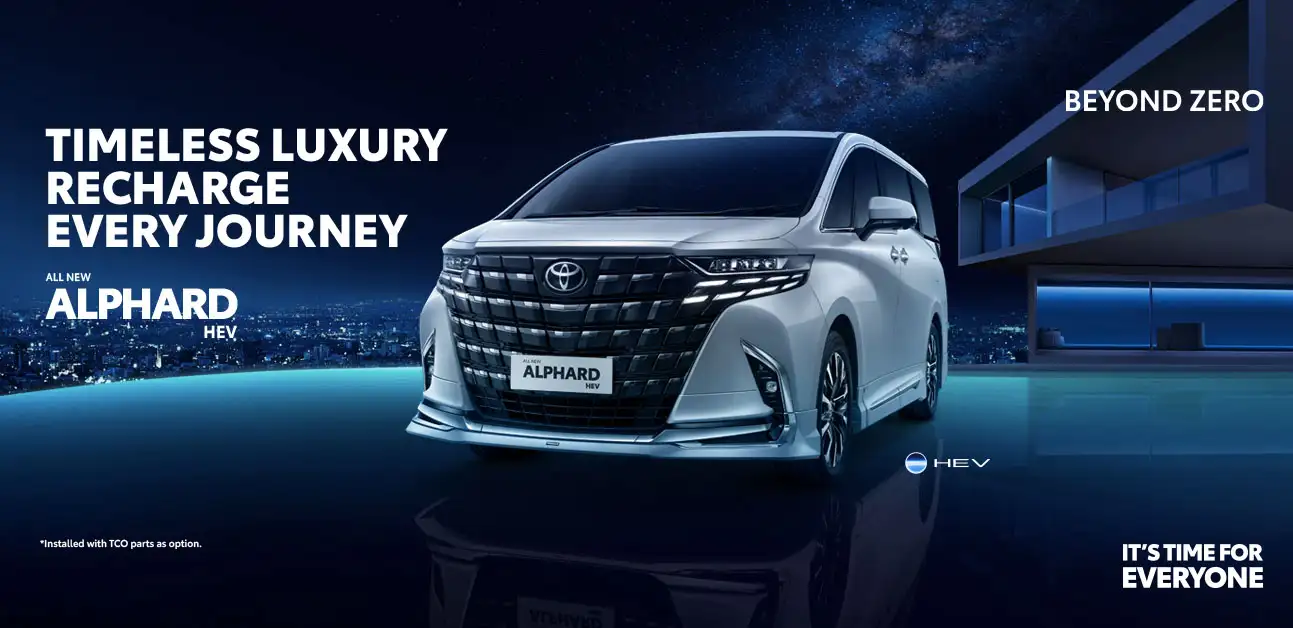 Experience sophisticated feeling in every path with Toyota All New Alphard HEV and bring sustainable impact for environment.