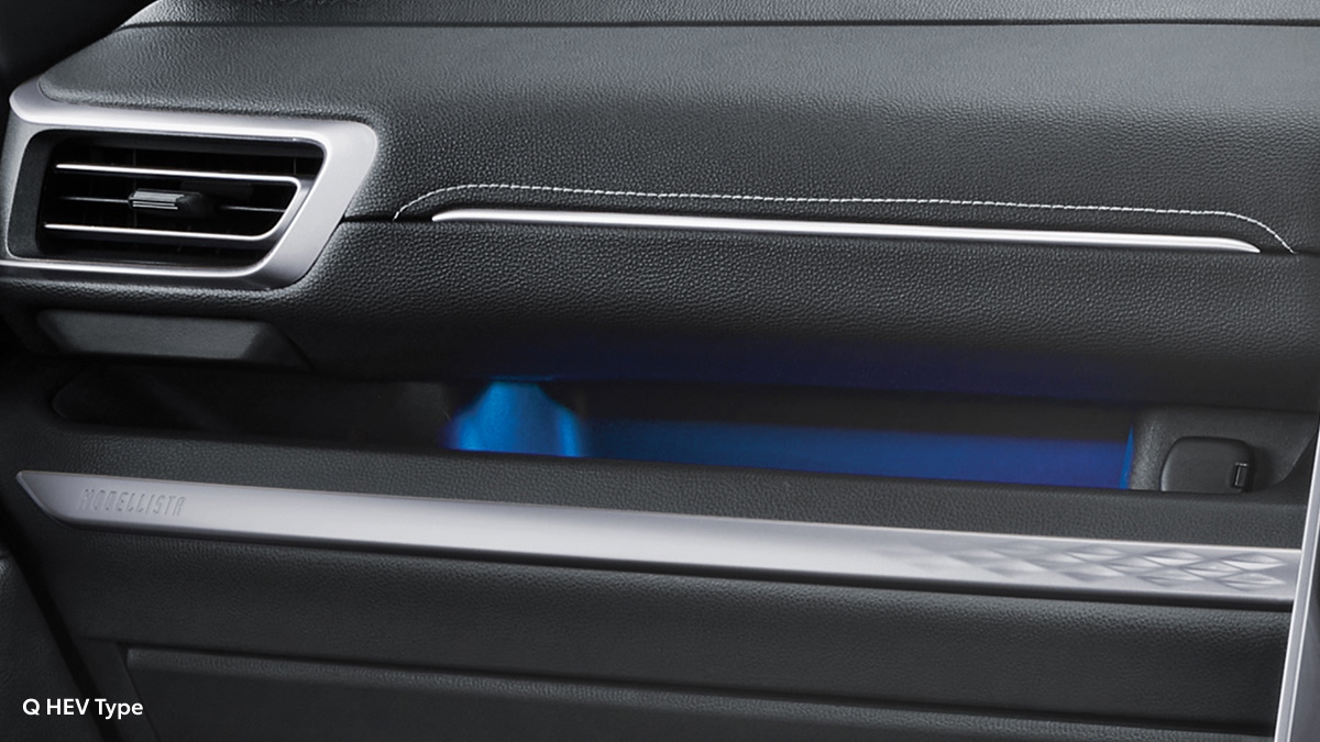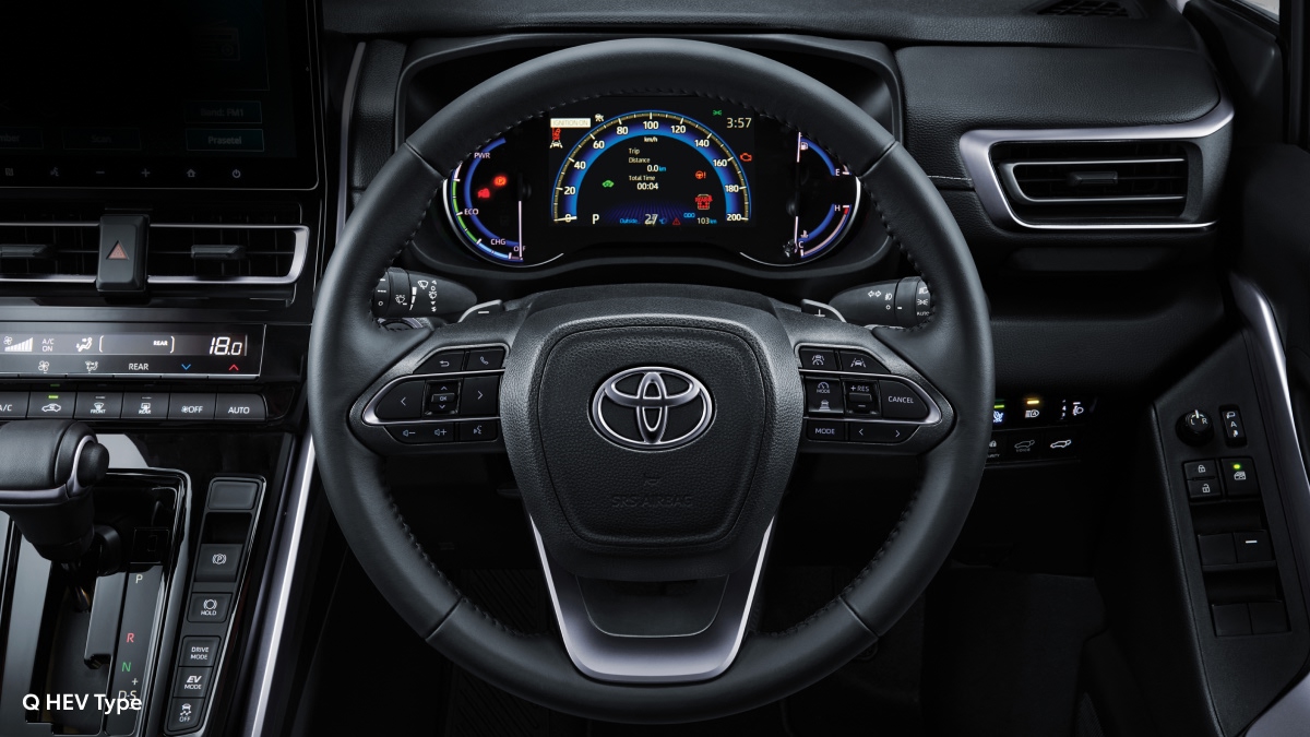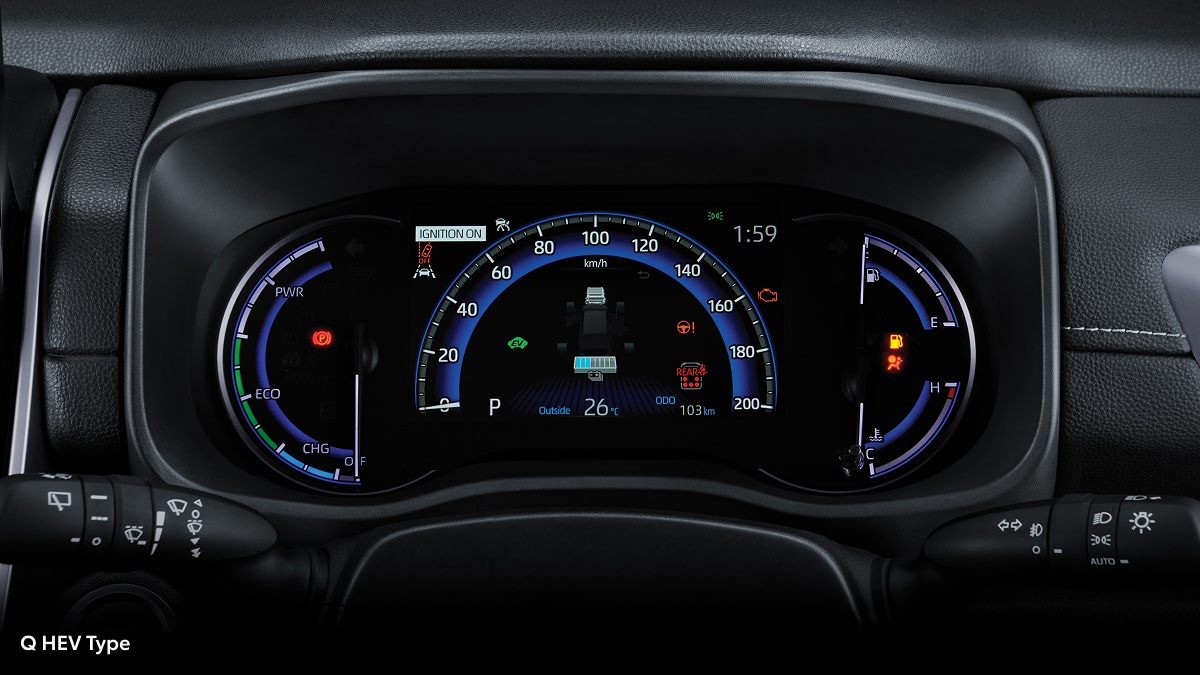 Full Dashboard dengan warna Two-Tone dan Luxurious Soft Pad (Tipe V) siap menemani Anda selama perjalanan berlangsung. TFT MID (Multi Information Device) berukuran 4,2 inci akan menyajikan beragam informasi selama perjalanan berlangsung. Tambahan Illumination Light Instrument Panel (Tipe V) akan semakin memperindah dashboard.