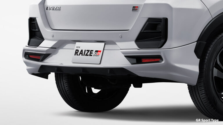 Raize GR Sport dilengkapi dengan berbagai fitur eksterior, seperti Illuminating Headlamp, Auto Retractable Mirror, LED Rear Combi Lamp, dan Aero Kit untuk tipe 1.0 Turbo GR Sport. Fitur black outer mirror juga menambah kesan bold dan sporty pada kendaraan ini. Bagian interior memberikan suasana sporty dan nyaman dengan fitur seperti Adaptable Auto A/C, Smart Entry with Push Start Button, Interactive 9’ Head Unit, dan banyak lagi.
