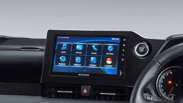 Capacitive touch screen supported with miracast that connected to rse, odd/even date reminder and mTOYOTA app.